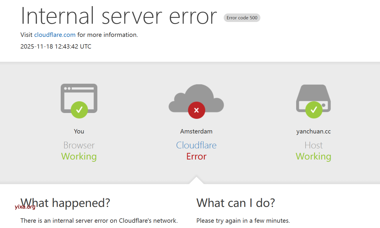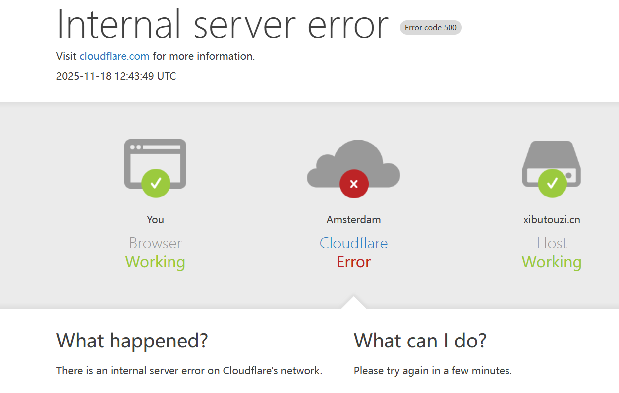北京时间2025.11.18 20:45左右 cloudflare服务无法使用